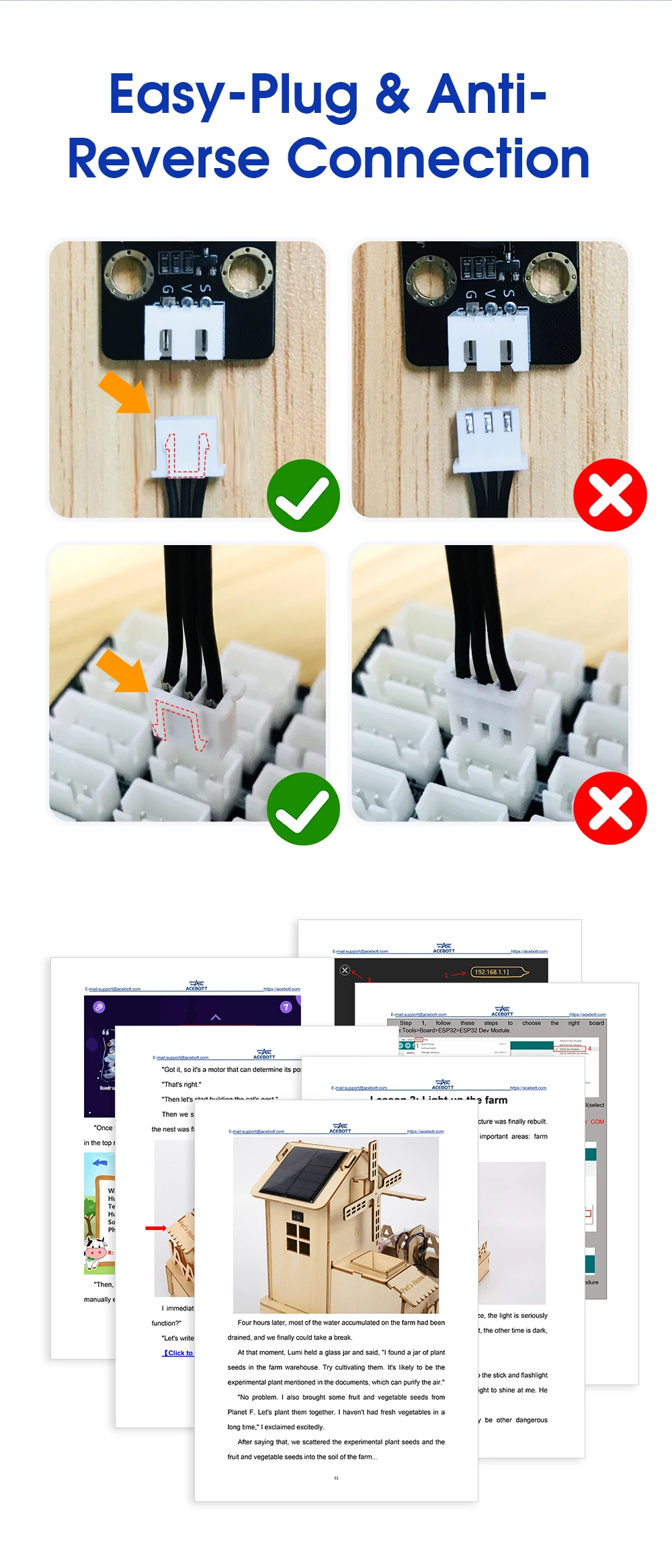 Le module électronique utilise un connecteur Easy-Plug XH2.54 avec câble, ce qui permet aux apprenants de connecter rapidement les modules et d'éviter les erreurs de câblage.